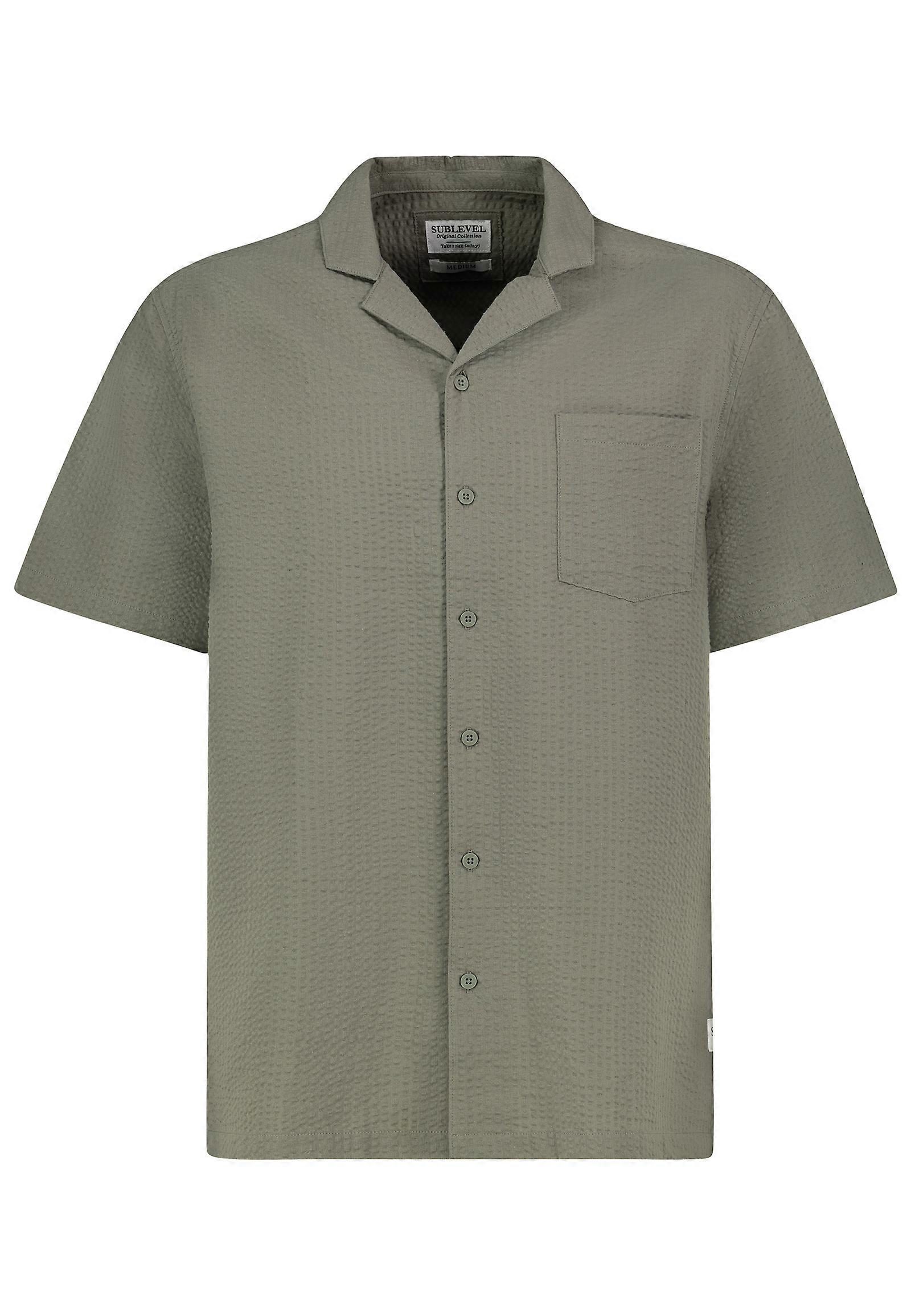 Sublevel Men Shirt Collar V-Neck Button Closure Solid Color