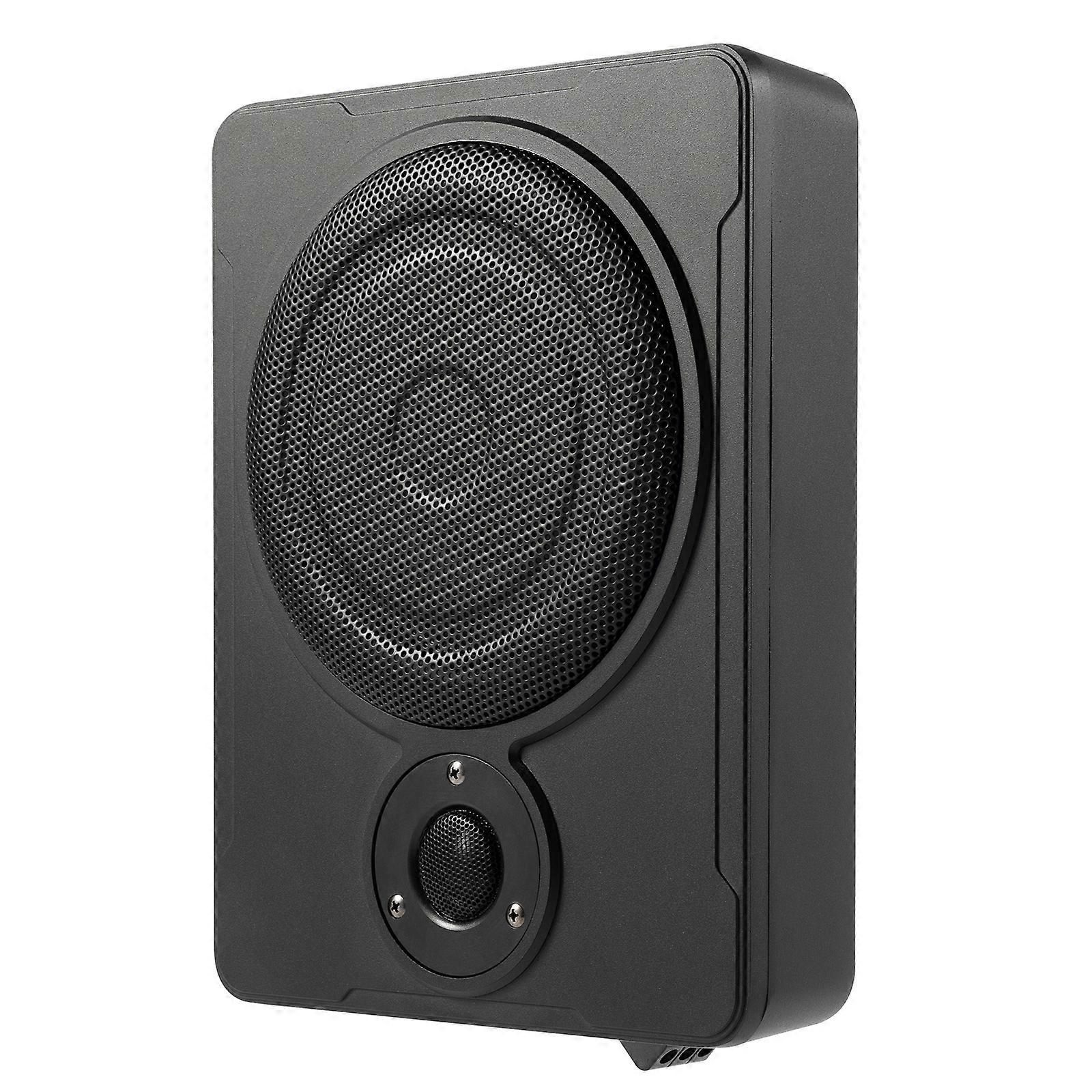 Key Features Immersive Sound Experience: It uses digital intelligent amplifiers to provide powerful, balanced, and distortion-free sound, creating an unparalleled immersive sound quality experience. Free Adjustment: The various adjustment knobs concentrated on one side allow you to adjust the bass and various gain functions, such as phase shift, bass boost, input gain control, etc., making the music more in line with your preferences. Mini Size: It is a great solution if your car interior space is insufficient. It has a slim body (7.5cm/3in) and can be easily installed under most car seats and backrests, saving space without affecting performance. Dual Mode: This product is a full-range subwoofer and comes with both vocal and pure bass outputs. You can switch between vocal and pure bass modes through a switch to meet your various needs. Strong Compatibility: It supports high and low-level inputs, provides flexible connection options, and is compatible with various car stereo systems and car host devices. Selected Materials: Aluminum alloy shell ensures durability, providing reliable performance while ensuring high sound quality; The rubber cowhide ring horn and stainless steel horn guard also provide better sound effects with excellent elasticity and toughness. Application It is very suitable for installation in various vehicle models such as cars, trucks, or jeeps. Specifications Material: Rubber, Aluminum Alloy, Stainless Steel Color: Black Style: Modern Surface Treatment: Baking Varnish Assembly Required: Yes Actual Power: 200W Maximum Power: 300W Frequency Response Range: 30-100Hz Sensitivity: 91db Impedance: 4Ω Gross Weight: 4.4kg/9.7lbs Net Weight: 3.9kg/8.6lbs Speaker Diameter: 20cm/8in Product Size: 31.5*24*7.5cm/12.4*9.44*3in Package Size: 40*33*13cm/15.74*13*5.12in Package Included 1*Car Subwoofer 5*Matched Connecting Wires 1*English Manual 1 Set of Installation Brackets and Screws   Notes 1.Please carefully read the manual and strictly follow the precautions to have a better experience. 2.Please ensure that the product is securely installed with sufficient clearance to avoid interference with seat adjustment or other vehicle components. 3.During prolonged or high-volume use, this product may accumulate heat. Please ensure that the product is adequately ventilated to facilitate heat dissipation and prevent overheating. 4.Please regularly check the wire connections and clean this product to prevent dust accumulation that may affect performance over time.