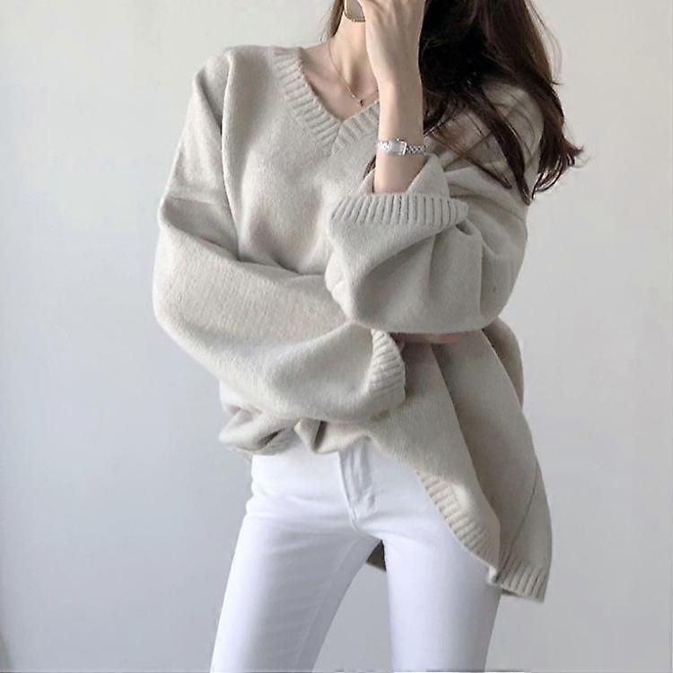 Korean Style Knitwear Autumn Temperament Fashion Women's Loose V-neck Pullover Bottom Sweater Women