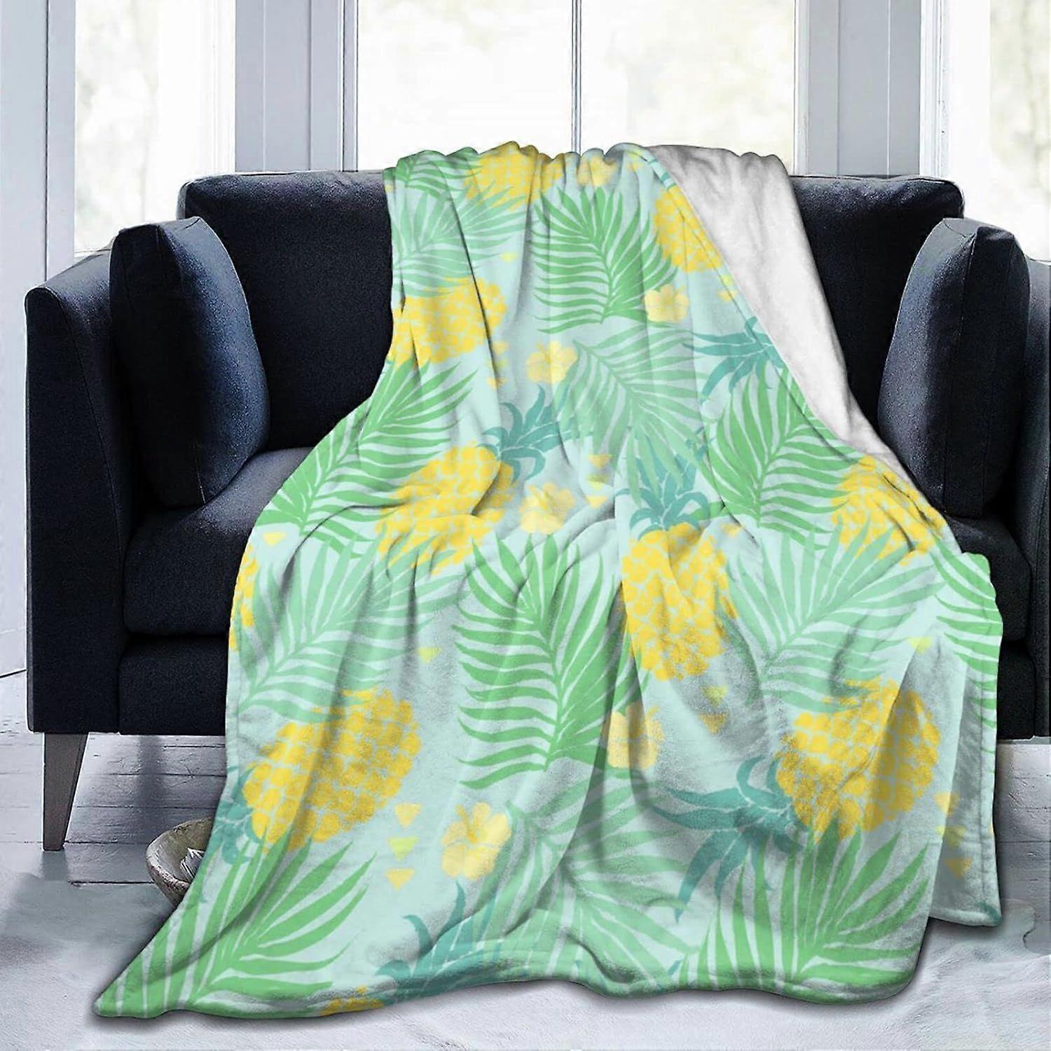 Super Soft Flannel Blanket Pineapples and Palm Leaves Throw Blanket Fluffy Soft Blanket for Bed Sofa Washable-qazgf16