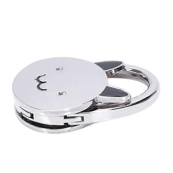 Cat Cartoon Foldable Silver Tone Handbag Hook Antislip Rubber Base Bag Holder