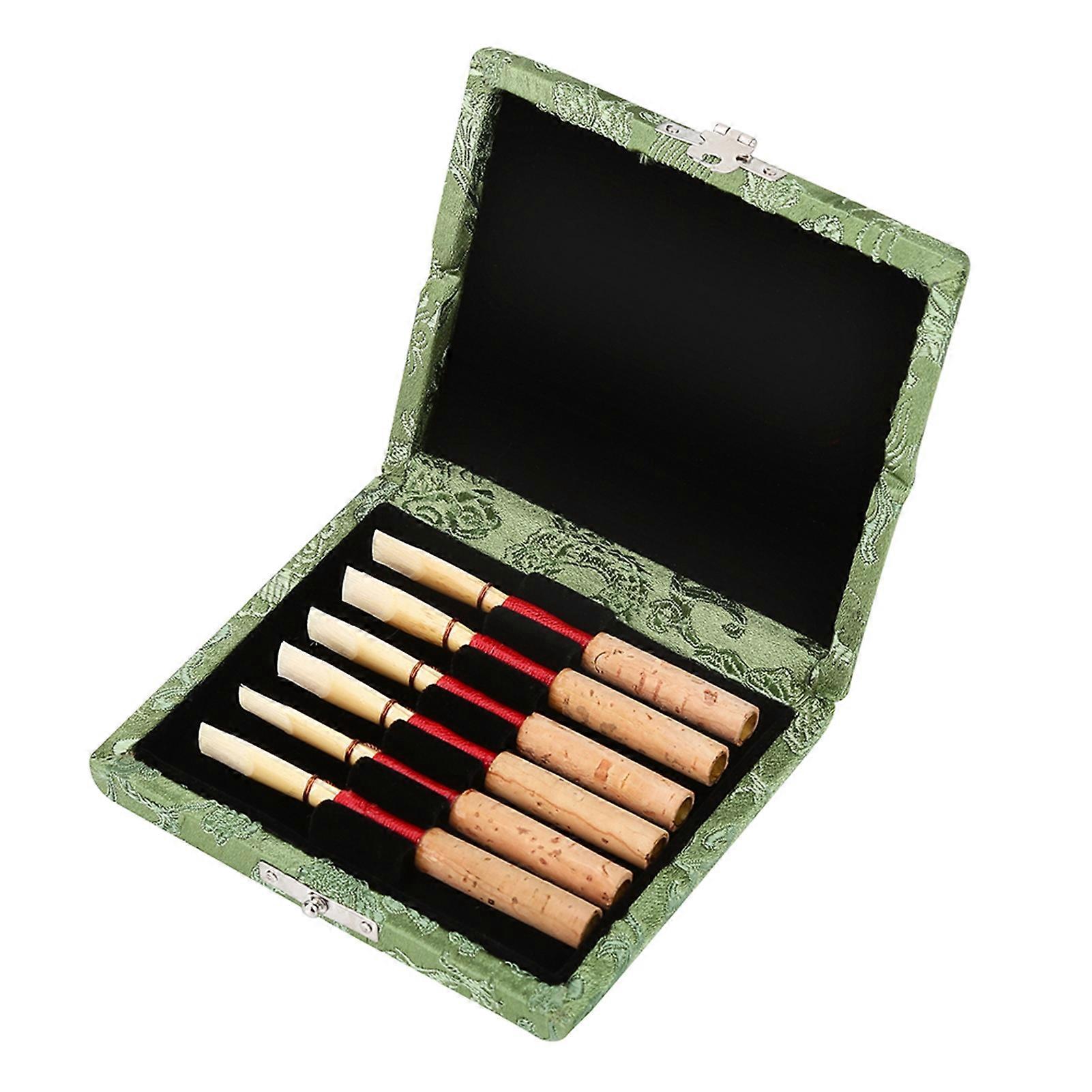 Wooden Reed Case Holder for 6 Oboe Reeds with Green Silk Cloth Cover, Portable Storage Box Protecting Oboe Reeds