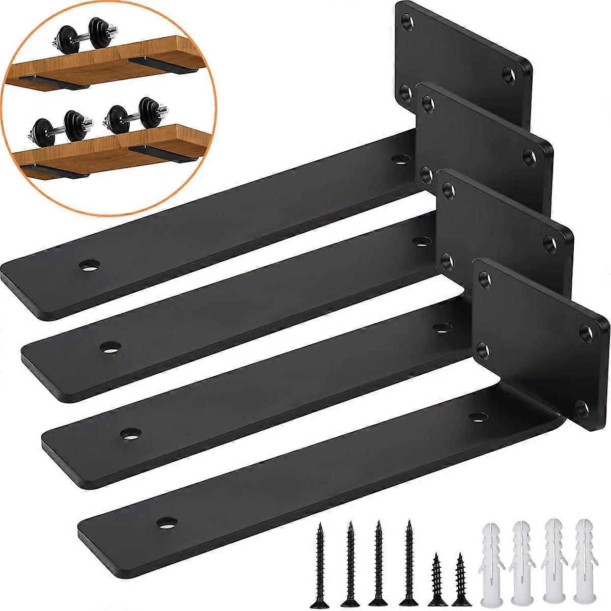 Heavy Duty Black Shelf Bracket 8 Inch, 4 Pack Wall-Mounted Supports for Living Room, Bedroom, Office Shelving