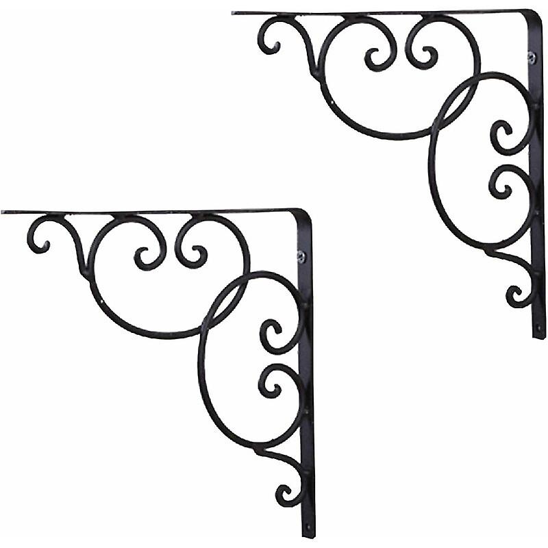 European Wrought Iron Triangular Shelf Bracket, Wall Bracket, Black, 6 Inches, 2 Pieces