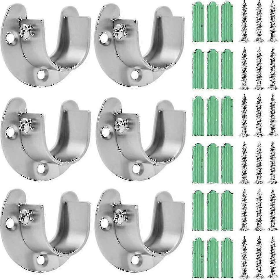 Stainless Steel Curtain Rod Bracket 6-Pack, Shower Closet Cabinet Support with Screws 2025