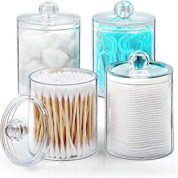 Cotton Round Holder 10 Oz Bathroom Jars with Lids for Cotton Rounds, Cotton Swabs, Cotton Pads (4-Pack)
