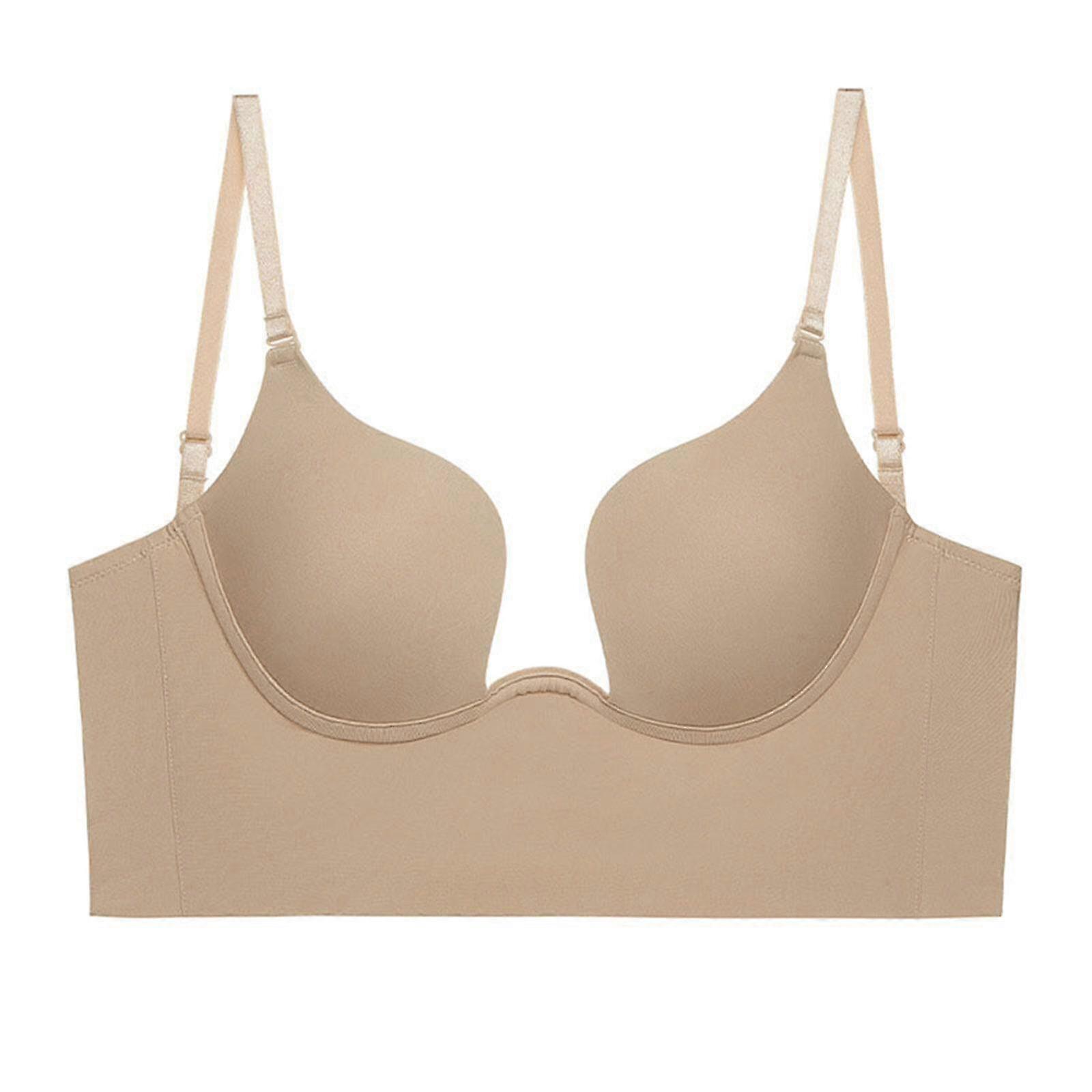 Thick Padded Bra with Deep V Plunge Low Cut Clear Straps and Multiway Bra for Women's Push Up