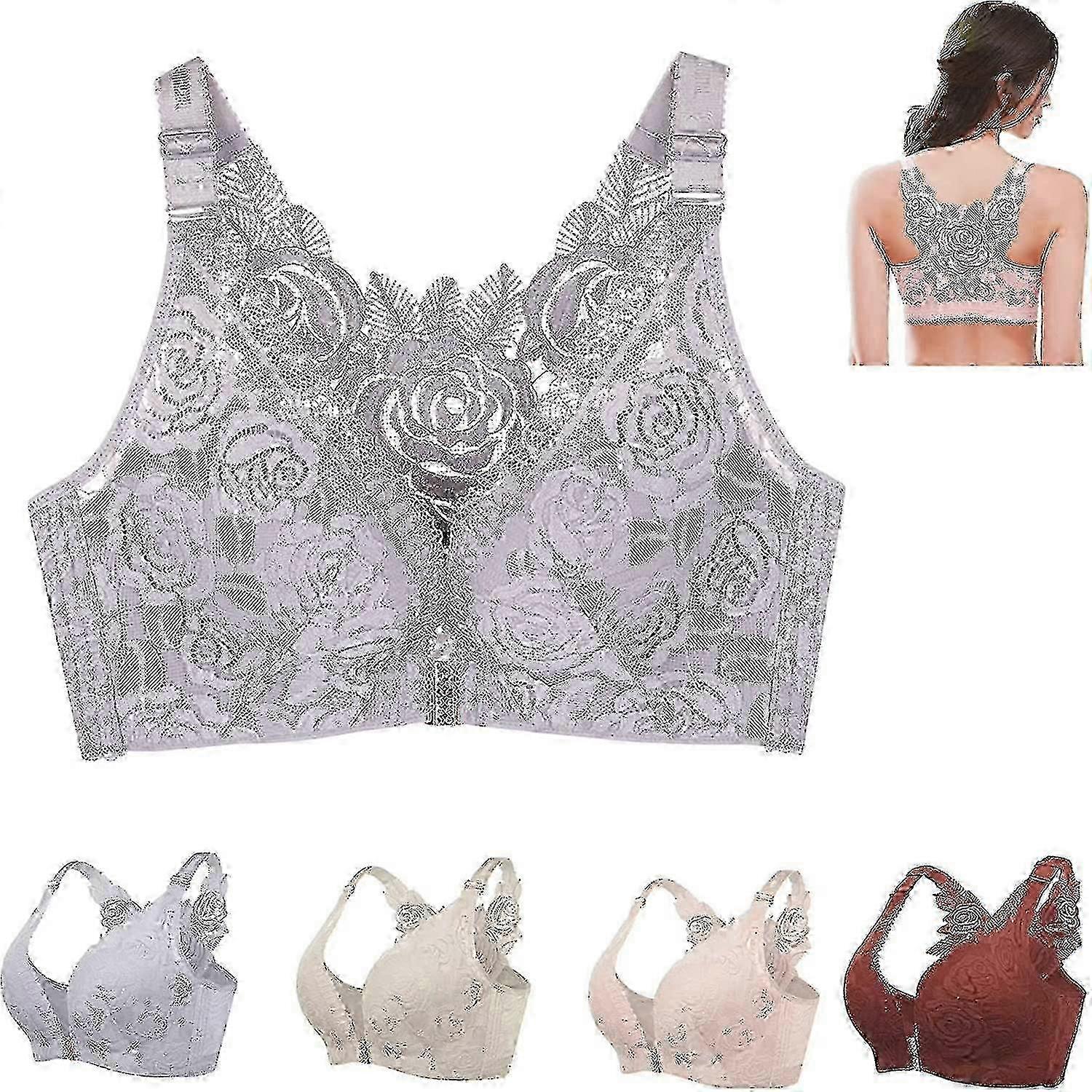 Front closure bra for women, wire-free floral lift seamless comfort 26s