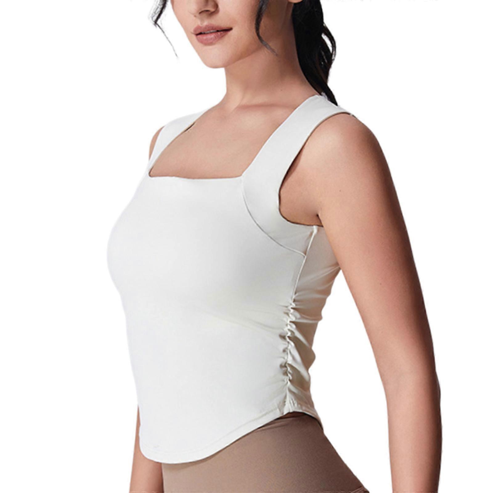 Women's High Impact Sports Bra Wide Strap Square Neck Ruched Yoga Crop Top for Running and Pilates with Supportive Fit White XL