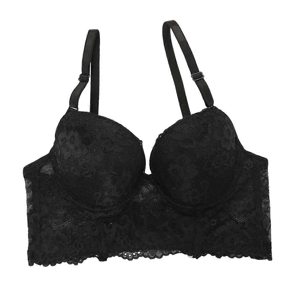 Women's Floral Lace Underwire Longline Corset Bra V Neck Bra with Adjustable Suspender Straps Lace Breathable Underwear Big Breasts Push Up Underwire