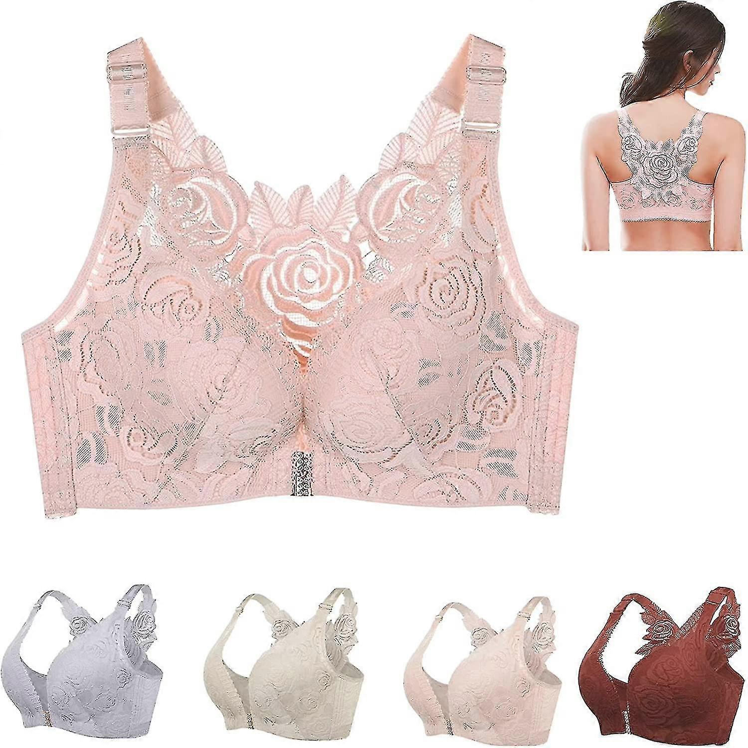 Floral Secrets Comfort Rose Bra, Plus Size Comfort Rose Lift Bra, Front Closure Push Up Wire-free & Seamless Bra for Women