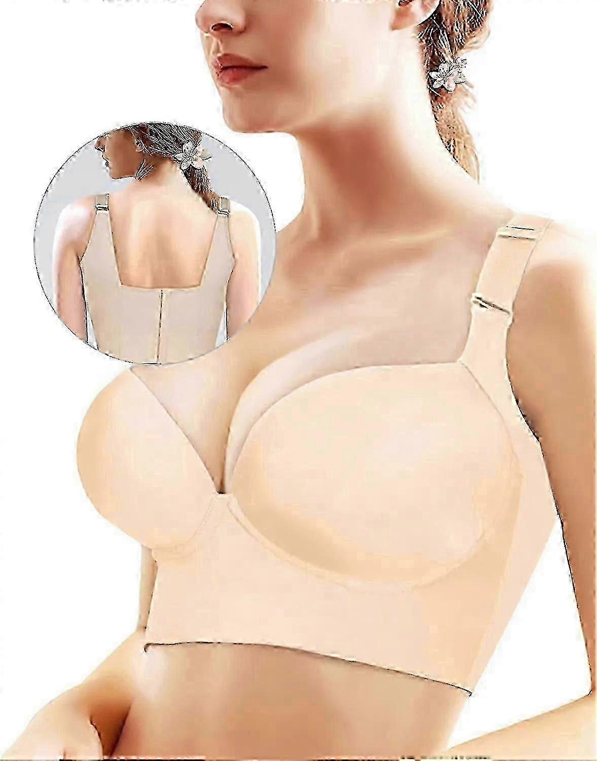 Full-Coverage Underwire Push Up Bra for Women Hide Back Fat Deep Cup T-Shirt Sculpting