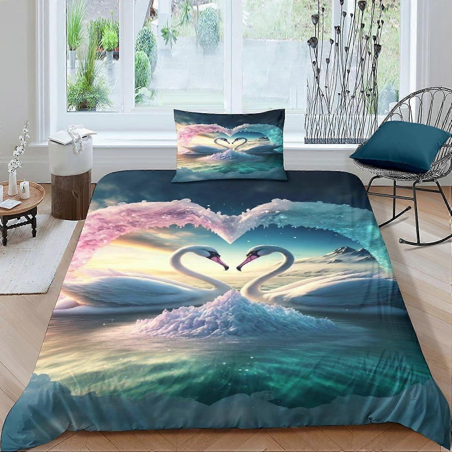 swan Duvet Cover with Pillowcases like Pattern like Bedding Set with Zipper Closure Soft Microfiber Quilt Cover