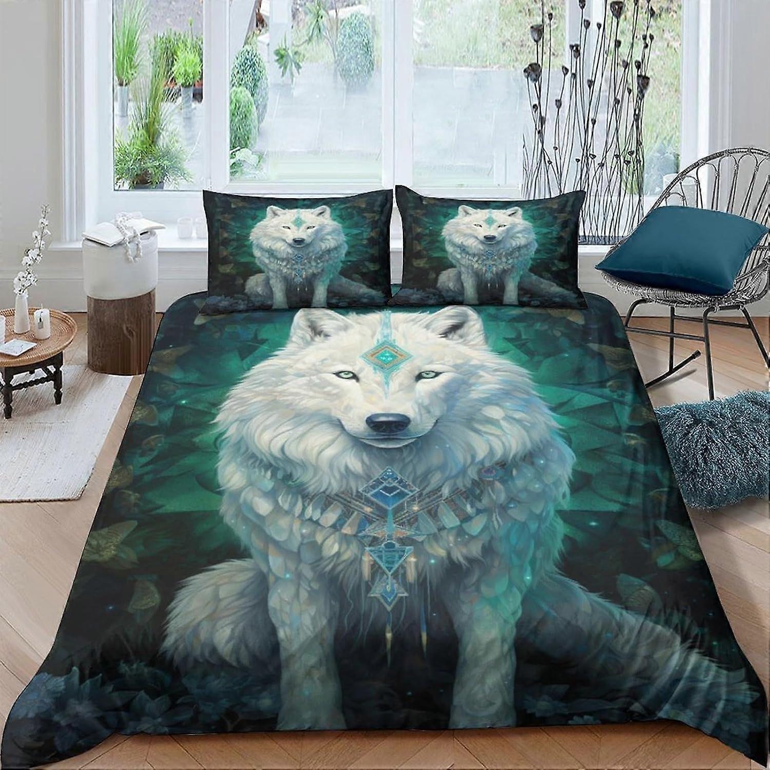 t19 White Wolf 3 Piece Set One-sided Soft Duvet Cover Set Hypoallergenic Soft Microfiber Quilt Covers And Bedding Set With Pillowcase for Kids Teens A