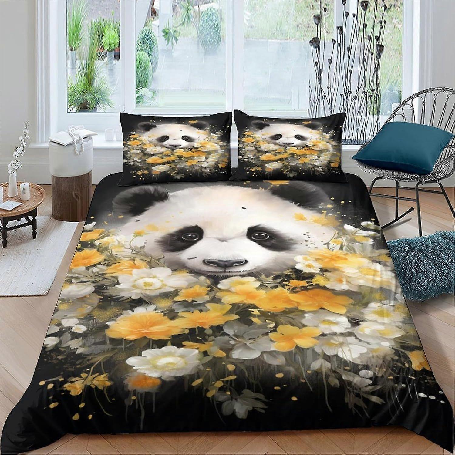 t20 Panda Quilt Duvet Cover 3 Piece Set with Zipper Closure 3D Soft Bedding Bedding Sets Microfiber Bedding Double k20