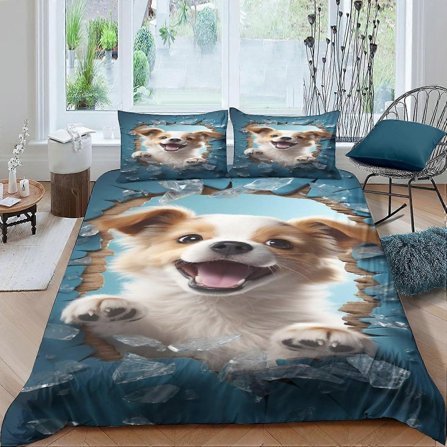t315 Cute Dog Duvet Cover 3 Piece Set One-sided for Kids Teens Adults Bedding Set Soft Microfiber Quilt Cover with Zipper Closure Double k315
