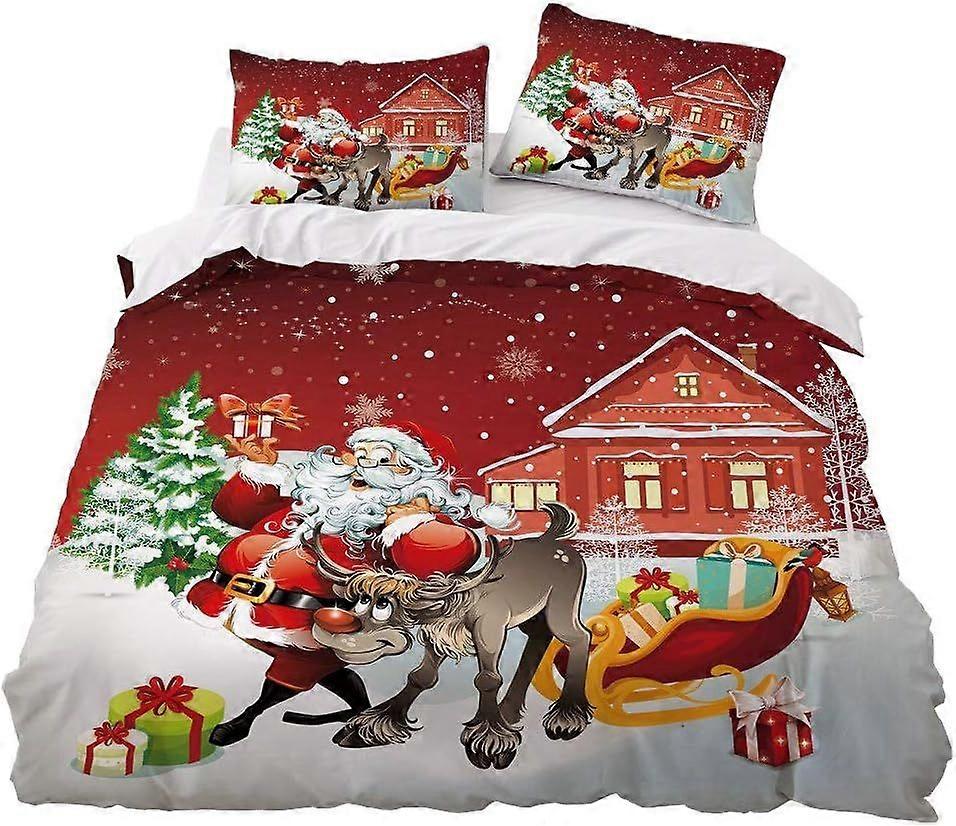 t418 Christmas Bed Linen Set, Bed Linen, Santa Claus Gift Set, Duvet Cover Set with Pillowcases h418