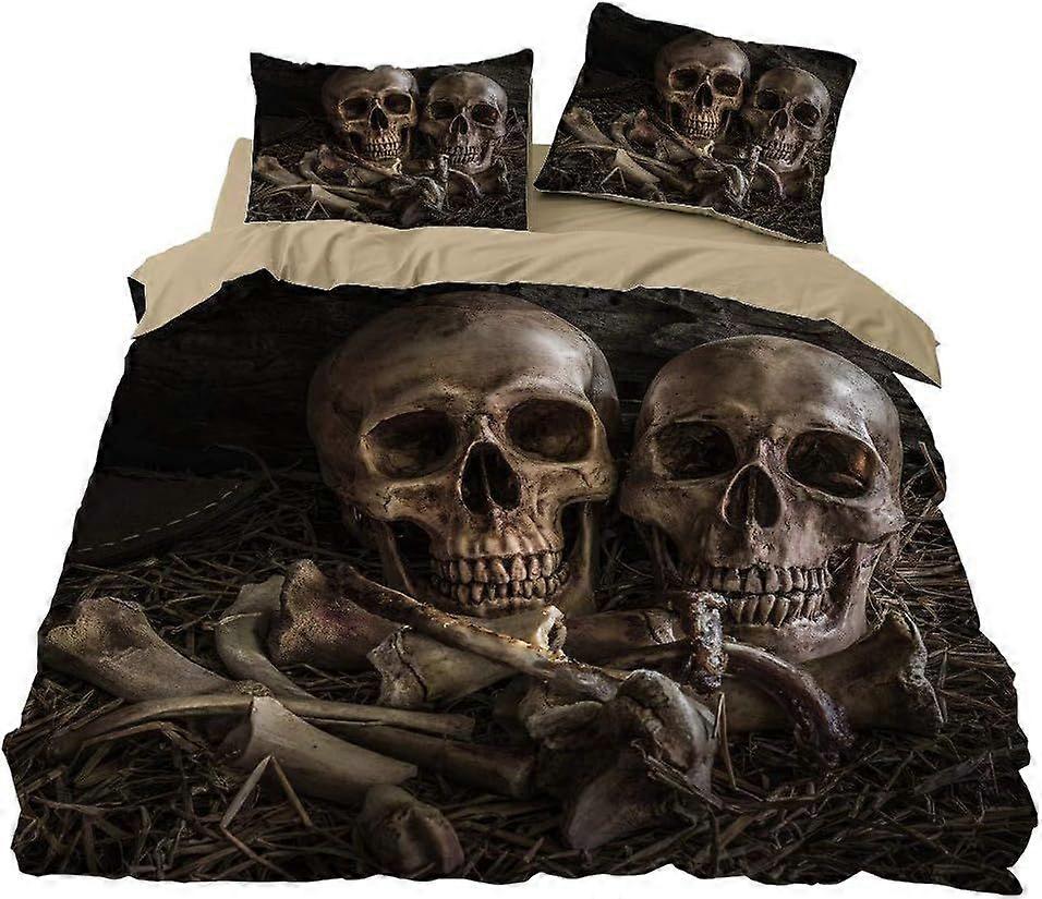 t453 Children's Duvet Cover Set, 3D Skeleton Bed Linen Set,, Skull, Microfibre Gothic Skeleton Bedding with Pillowcase h453