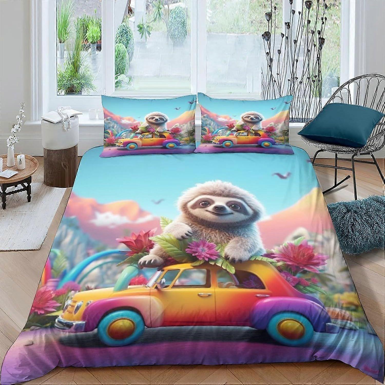 t495 Sloth Quilt Covers Multi Colour 3 Piece Set Luxury Soft Duvet Cover Easy Care Animal Quilt Bedding Set With Pillowcases Double k495