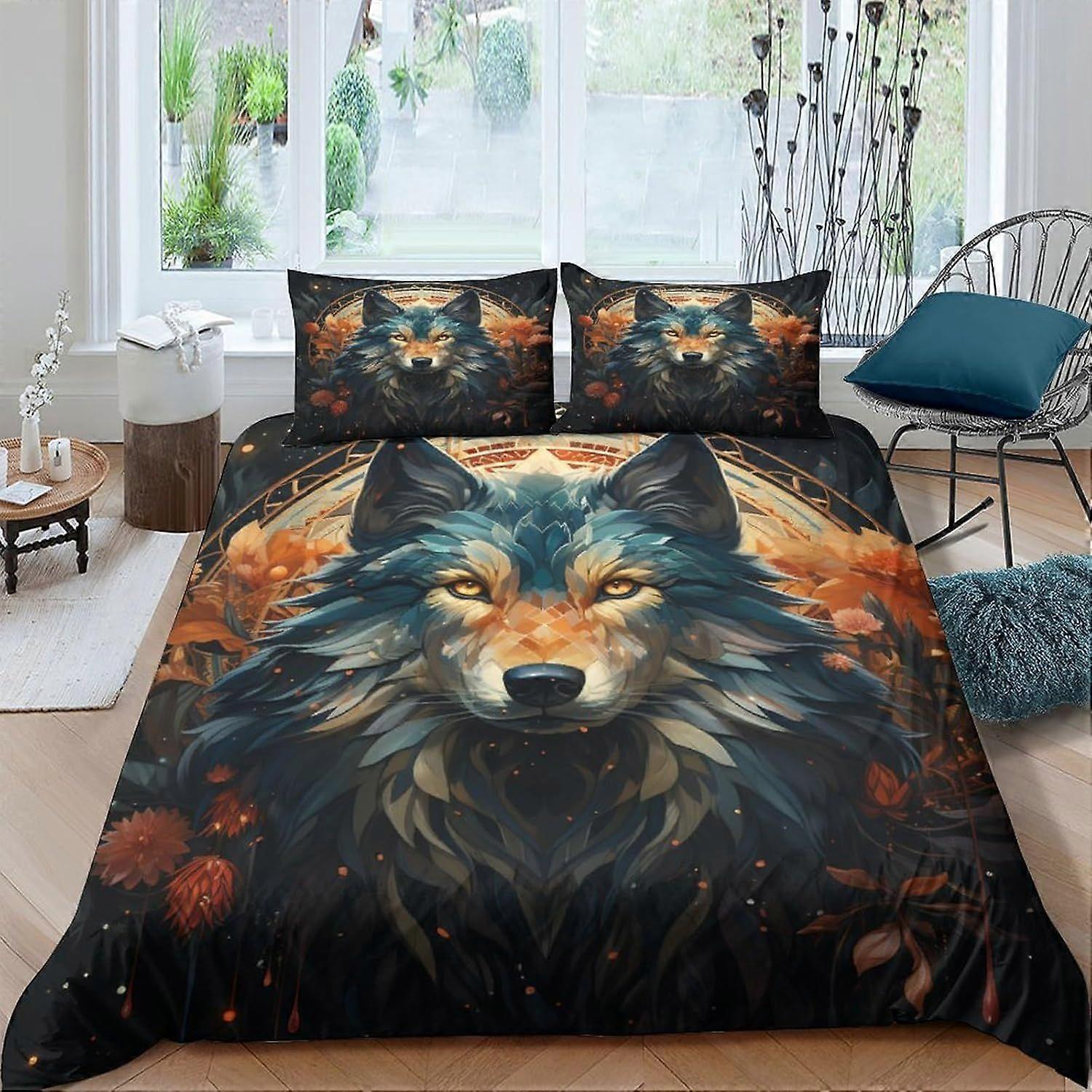 t525 Wolf Duvet Cover Set Bedding Set 3D Microfiber Polyester Comforter Cover with Pillow Shams, 3 Piece Set, Zipper Quilt Cover Double k525
