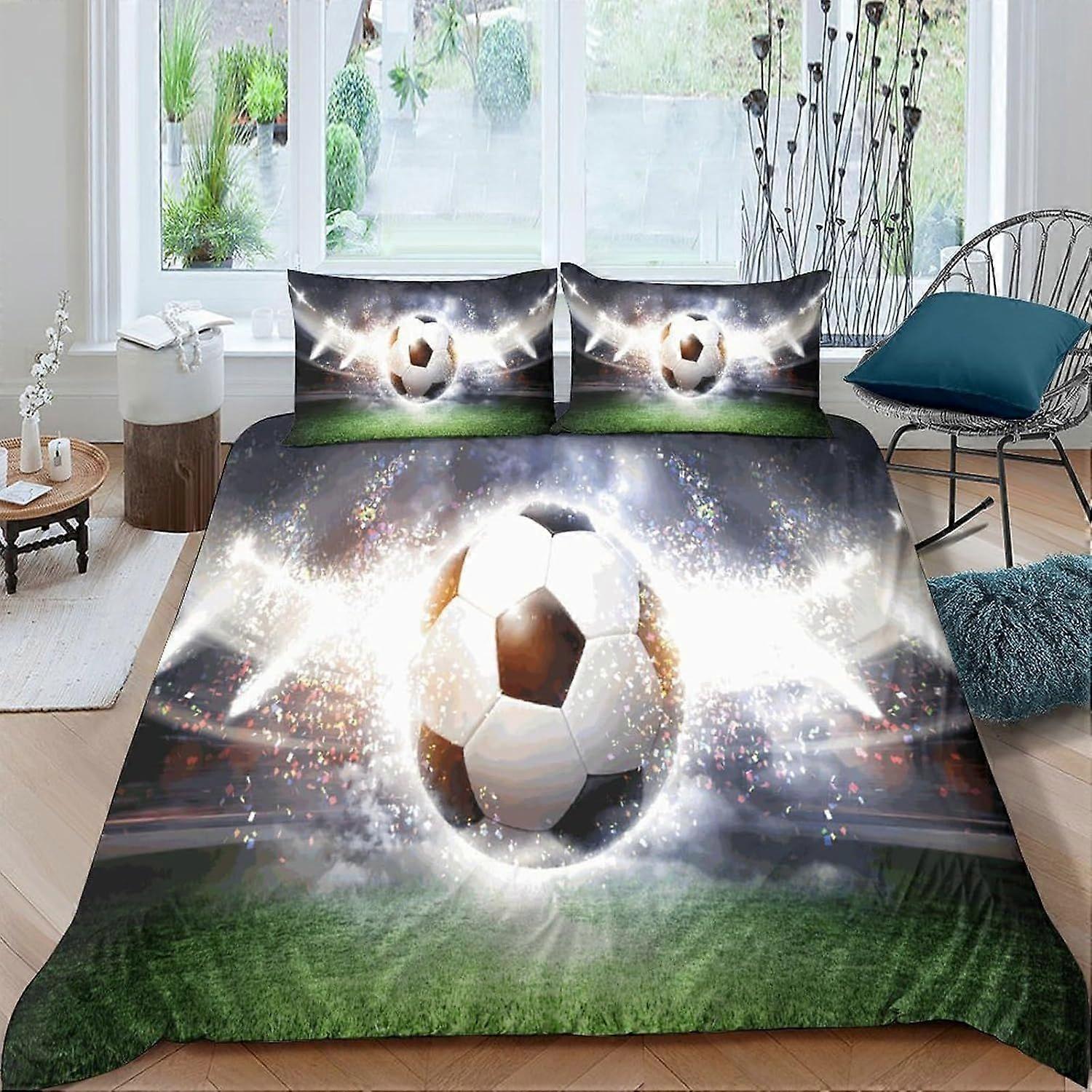 t543 Football Comforter Cover 3 Pieces 3D Quilt Cover Bedding Set for Boys Girls with Pillowcases Duvet Cover with Zipper Closure Soft Microfiber Doub
