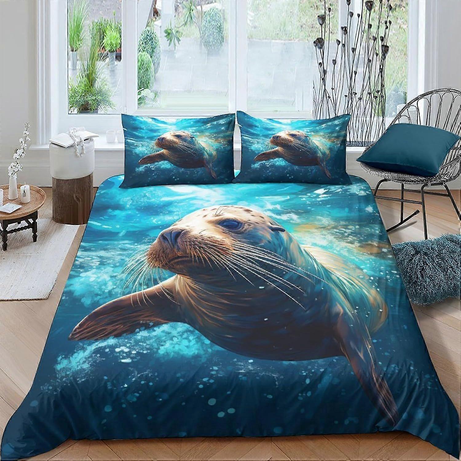 t591 Animal Seal Duvet Cover 3 Piece Set One-sided Pattern Bedding Set Soft Lightweight Microfiber Quilt Cover with Zipper Closure Double k591