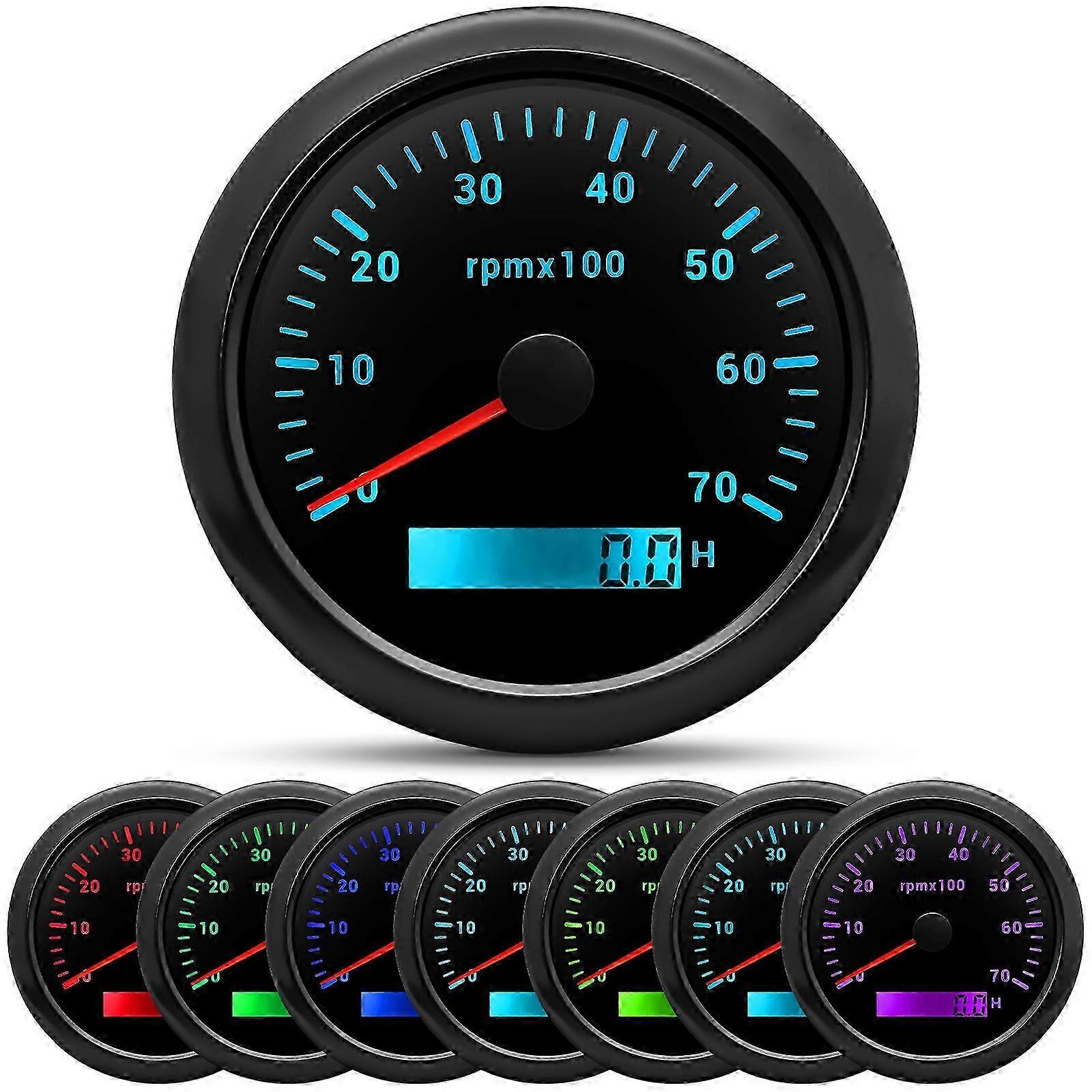 Digital Tachometer 85MM with 7-Color LCD Backlight for Car, Boat, Marine, Yacht, RV Engine Speed Monitoring 3000-8000 RPM