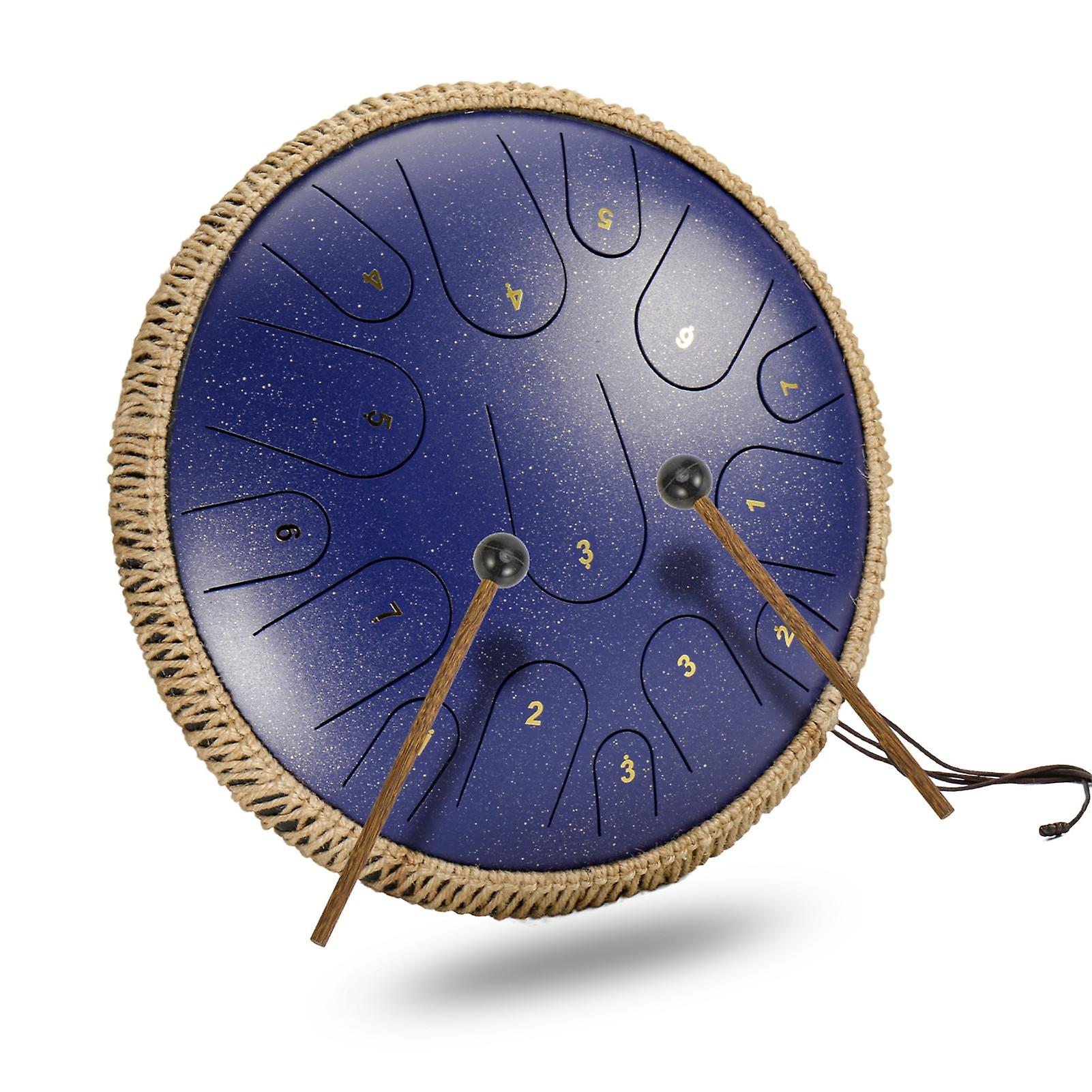 Blue 14in Steel Tongue Drum in D Key - Handpan Percussion with Accessories