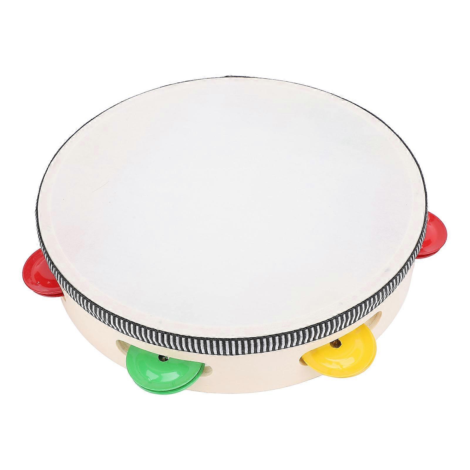 8in Hand Held Tambourine Drum for Kids & Adults, Beech Wood
