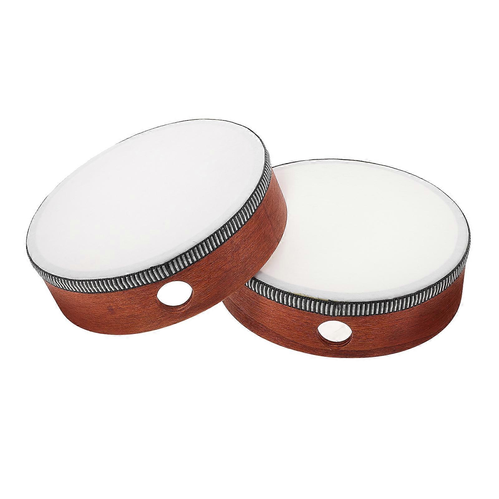 Wood Tambourine Hand Drum for Play Brown Comfortable Grip Design 6 inch