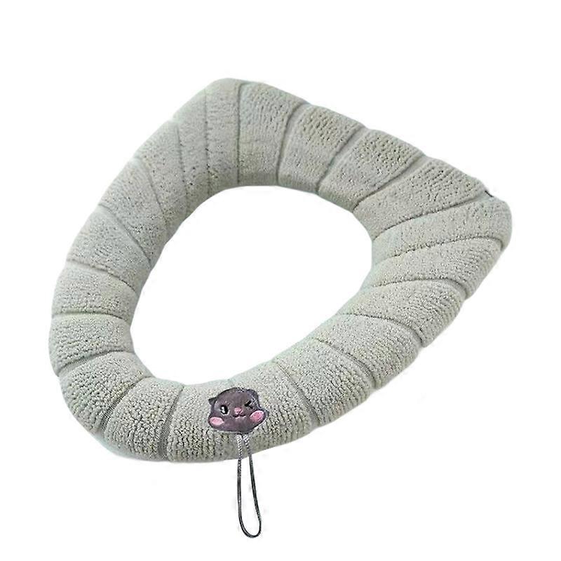 Toilet Seat Cover with Handle Stretchable Washable Thick Non-slip Universal Polyester Winter Warm Cushioned Toilet Pad for Bathroom JIKAIX