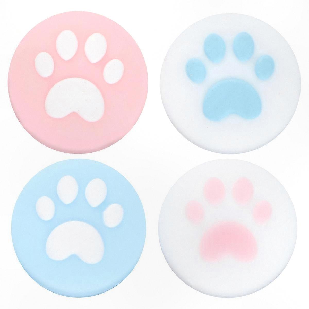 Cat Paw Design Joystick Caps - 4 Pack Silicone Grips for Comfort and Protection, Blue & Pink