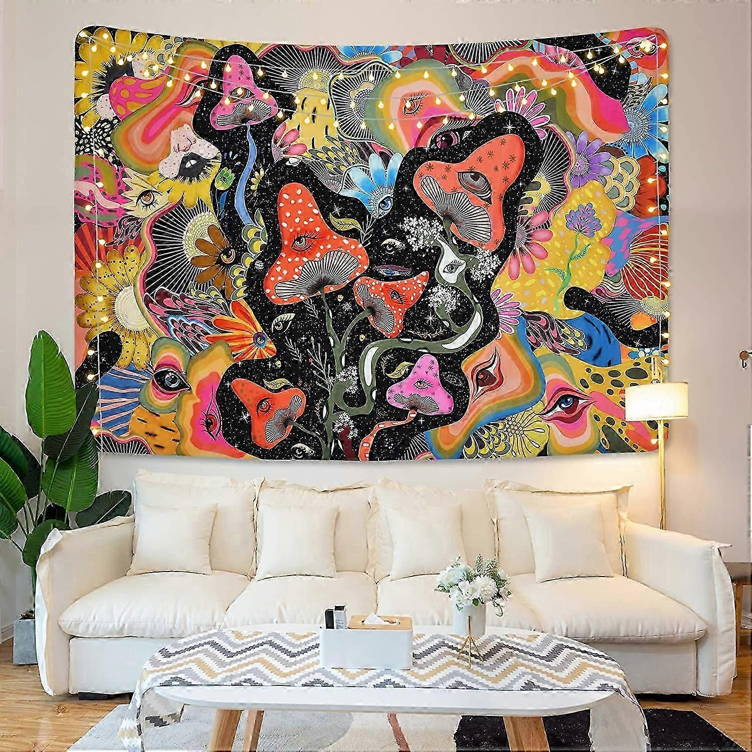 Psychedelic Mushroom Tapestry - Trippy Colourful Wall Hanging (39x59 Inches)