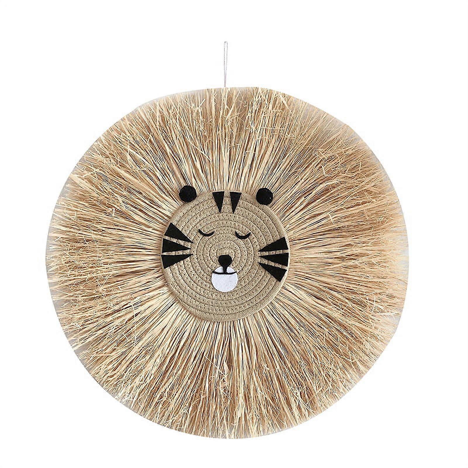 Hand-woven Cartoon Lion Tiger Straw Wall Hanging Cotton Thread Weaving Tapestry Home Decor