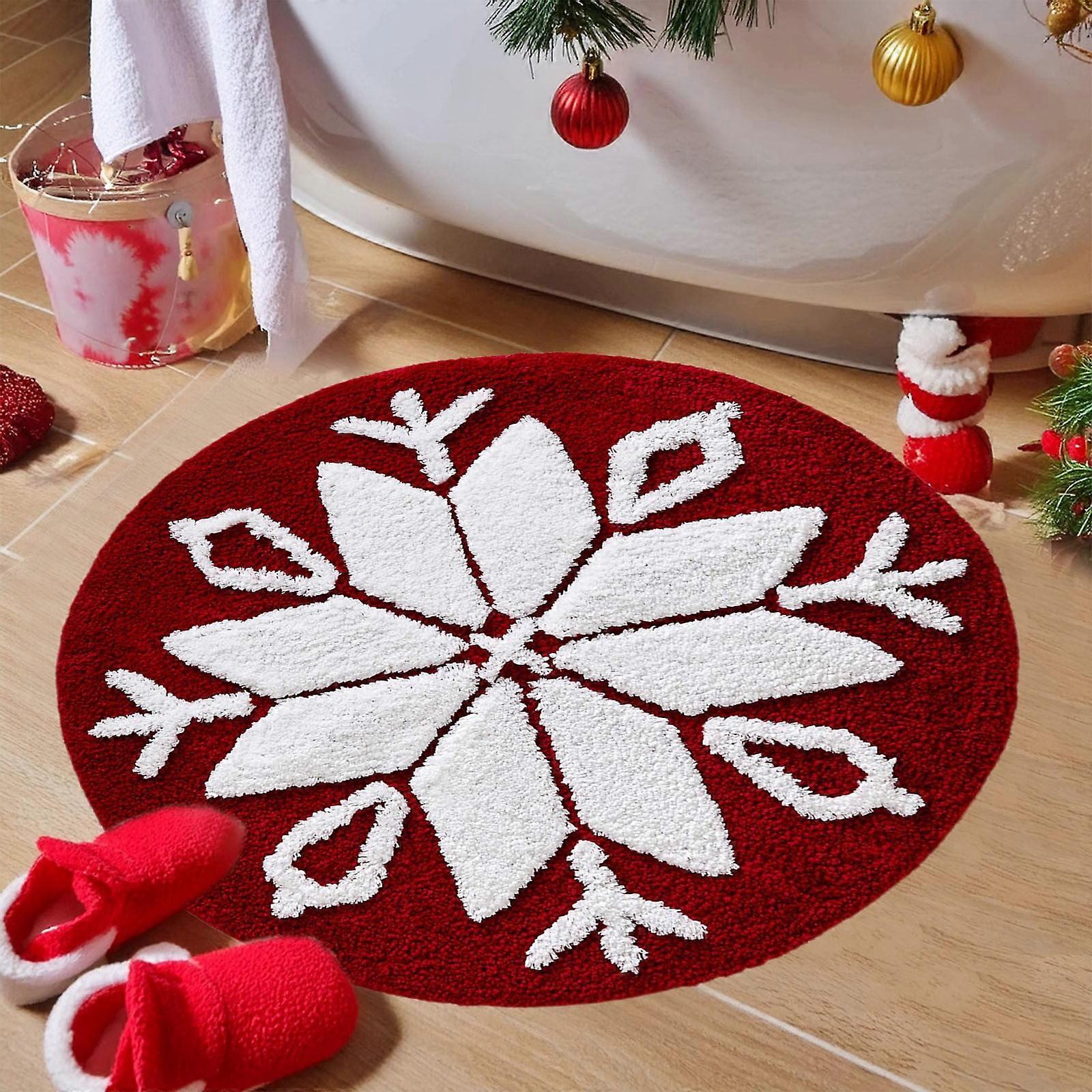 Red Christmas Snowflake Bathroom Rug, Non-Slip Round Doormat, compatible with Xmas Decor, Trendy Snowflake Carpet for Winter Welcome Mat