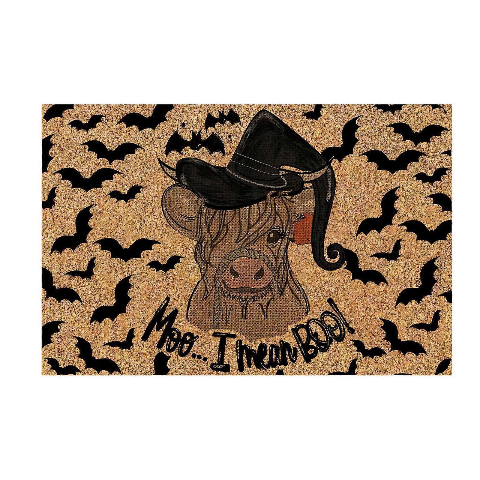 Halloween Themed Bathroom Foot Mat Cow Bat Entrance Rug Foot Mat Stay Dry and Slip Free in Style