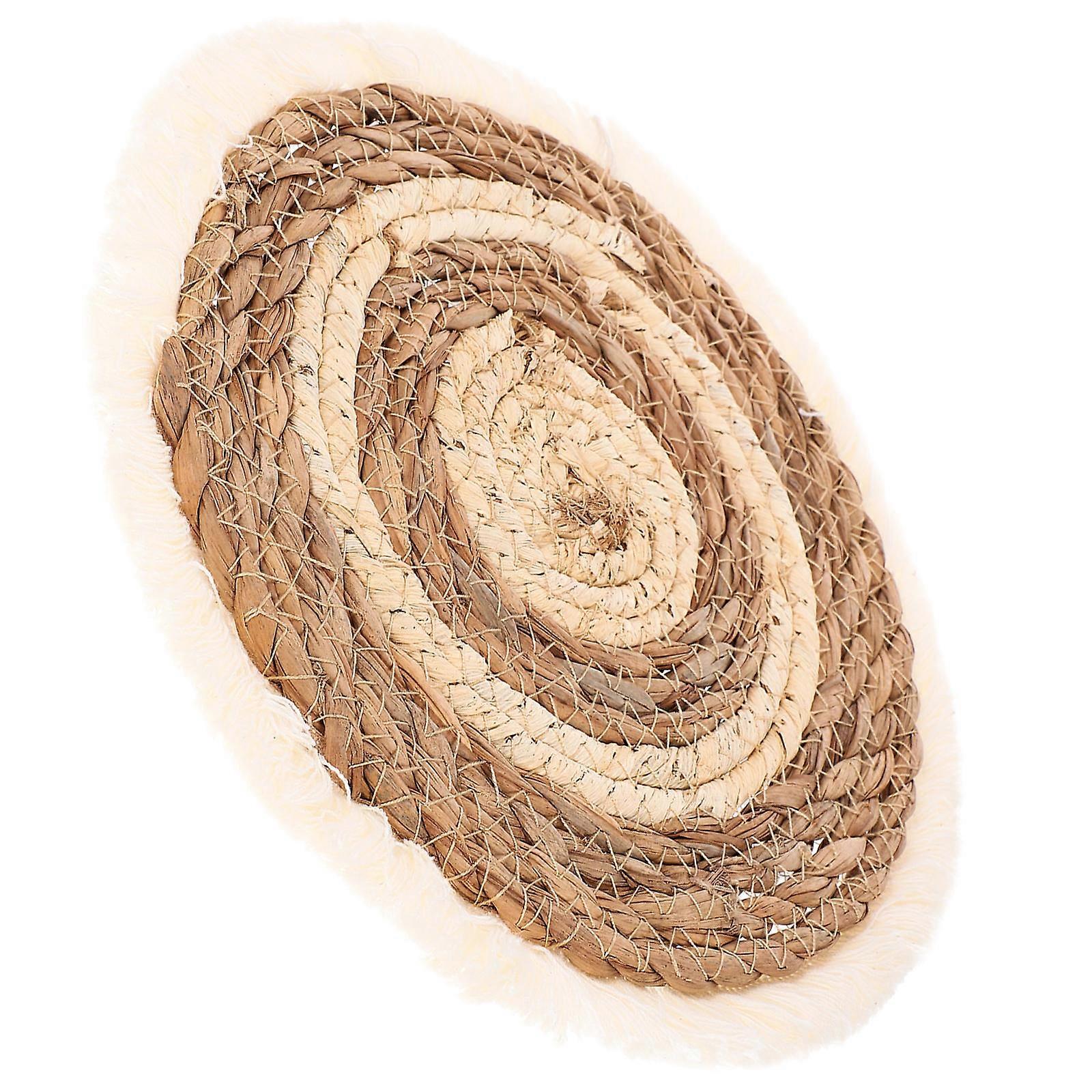 Dining Table Insulation Mat Woven Placemat Heat Resistant Protect Tabletop Rustic Style Couples 9.8X9.8X0.2in 1Set