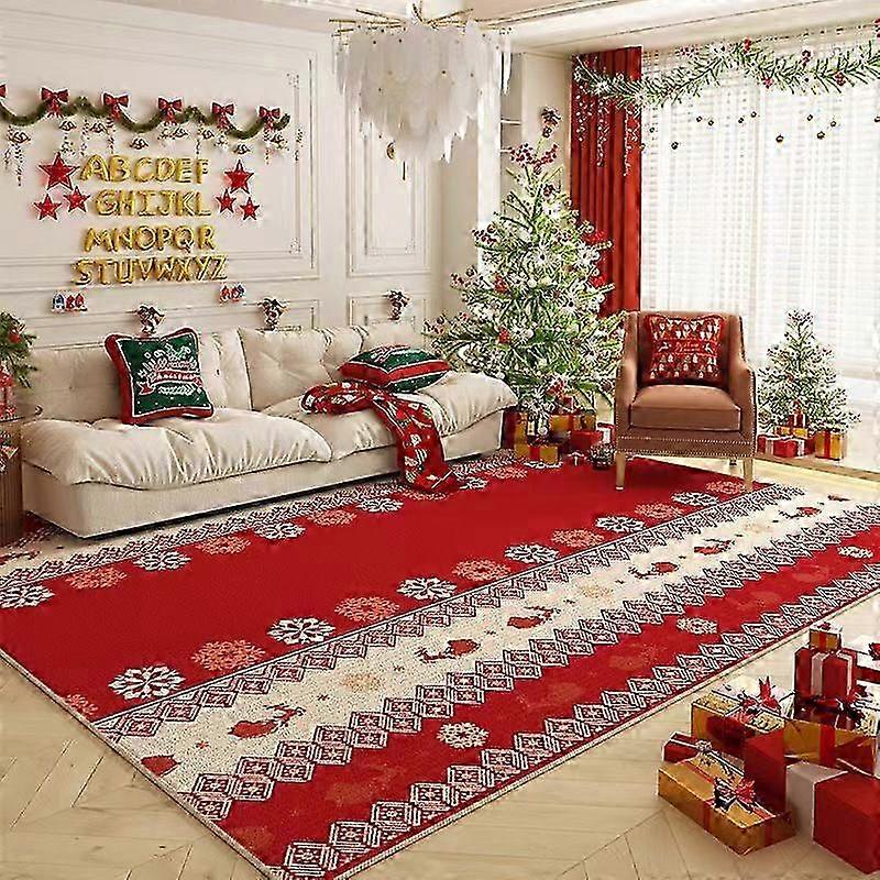 Christmas Full Coverage Rug Classic Anti-Slip Coffee Table Mat Absorbent Doormat Dirt Resistant 26s