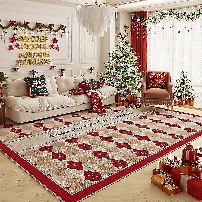 Christmas Full Coverage Rug Classic Anti-Slip Coffee Table Mat Absorbent Doormat Dirt Resistant 26s