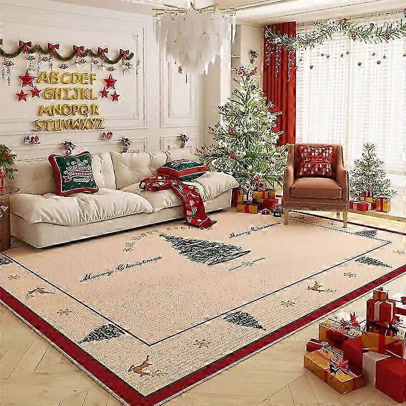 Christmas Full Coverage Rug Classic Anti-Slip Coffee Table Mat Absorbent Doormat Dirt Resistant 26s