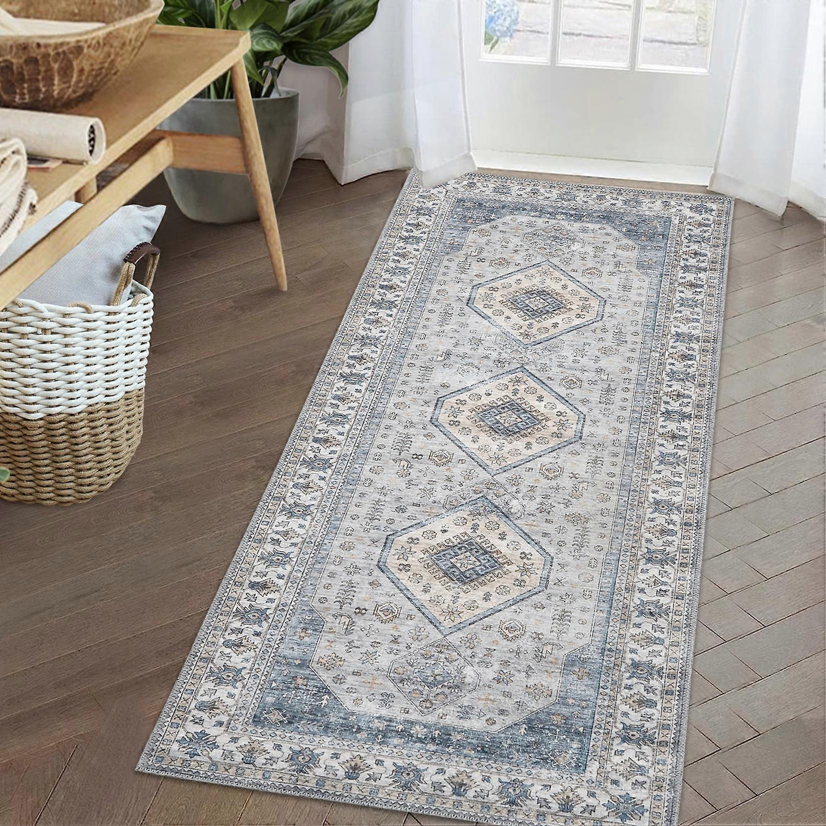 Haperlare Runner Rug 2x6 Ft, Grey Teal, Vintage Persian Design, Washable & Non-Slip, for Bathroom, Kitchen, Bedroom – Compatible with Haperlare