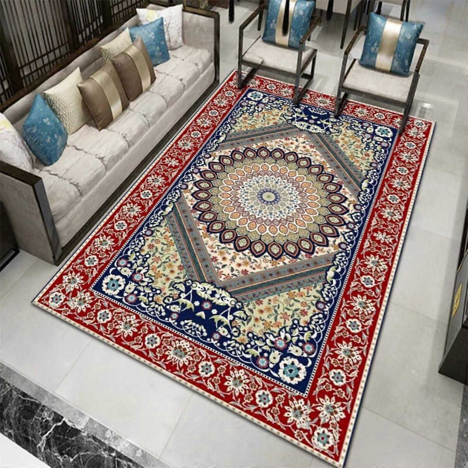 Washable Area Rug For Living Room Dining Room Desk Boys Bedroom Retro Blue 160x230 Cm 5ft 3in x 7ft 7in