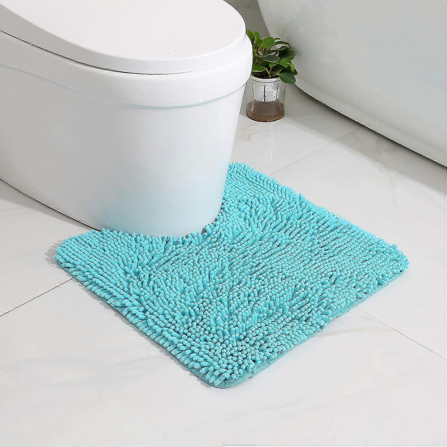 Curved U-Shaped Toilet Bathroom Rugs - 20 x 31.4 Inch - Aqua Blue