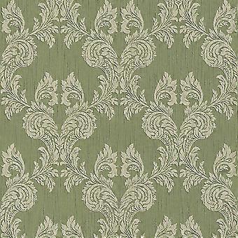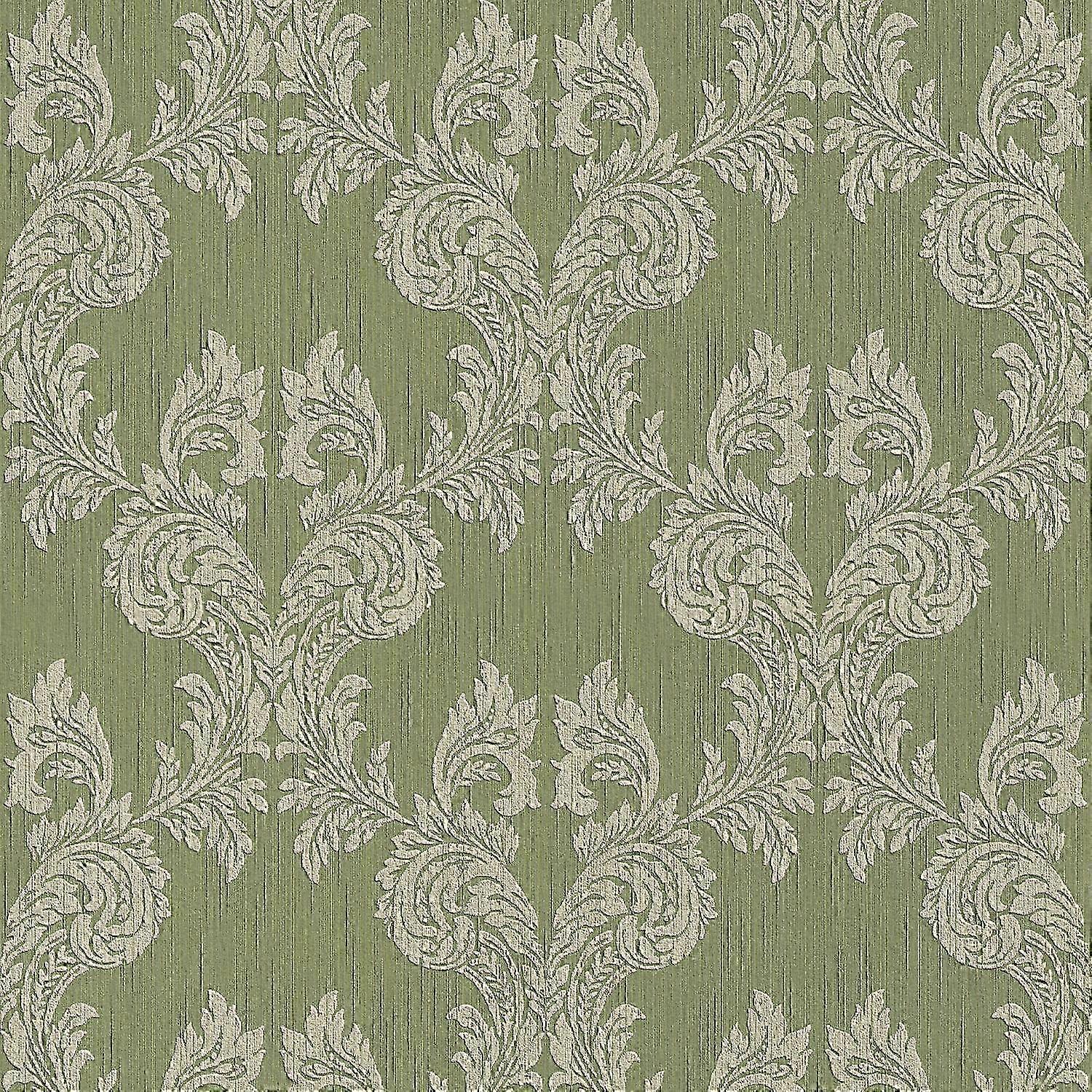 Carta da parati aspetto tessile Profhome 956304-GU Carta da parati tessile strutturata con aspetto tessile opaca verde 5,33 m2
