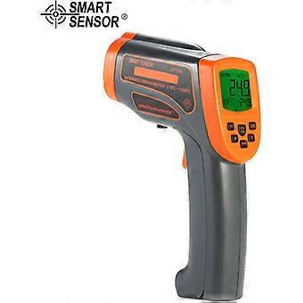 <p>This professional digital non-contact infrared thermometer is a reliable industrial temperature measuring gun used to measure the surface temperature of an object safely and quickly in less than 1 second. It can be widely used in the petroleum and chemical industry, railway, electricity, textile processing, etc.</p> <p></p> <p>Features:</p> <p>Non-contact measurement --- Safely measure the surface temperature of hot, dangerous, or hard-to-reach objects without contact.</p> <p>More accurate --- Professional infrared thermometer with high performance and high accuracy. Digital laser non-contact thermometer only needs 0.5s to accurately measure the target temperature at greater distances, D:S=20:1.</p> <p>Multi-function --- Data lock, switchable laser positioning, and auto power off function. Switchable temperature units: Celsius (℃) and Fahrenheit (℉). Can measure maximum, minimum, temperature difference, average value and can also set high and low temperature alarm which is especially suitable for batch measurement.</p> <p>Large Capacity Clear Reading --- With data storage function, can store maximum 200 groups of temperature. You can store, recall and clear the data as you like. Digital LCD display with switchable backlight, convenient to read at night. Low battery indication and laser indication functions.</p> <p>Versatile Use --- Widely used to measure the temperature of the object surface. The infrared thermometer can be used for petroleum and chemical industry, railway, electricity, textile processing, etc.</p> <p></p> <p>Specifications:</p> <p>Brand: SMART SENSOR</p> <p>Color: Gray + Orange</p> <p>Material: ABS plastic</p> <p>Measuring range: -18 ~ 1350 ℃ (0 ~ 2462 ℉) / -18 ~ 1650 ℃ (0 ~ 3002 ℉) (optional)</p> <p>Accuracy: ± 2% or ± 2 ℃</p> <p>Resolution: 0.1 ℃ or 0.1 ℉ (<1000 ℃); 1 ℃ or ℉ 1 (> 1000 ℃)</p> <p>Repeatability: ± 1% of reading or ± 1 ℃</p> <p>Response Time: 500 ms, 95% response</p> <p>Display: LCD with switchable backlight</p> <p>Spectral Response: (8-14) um and 500ms</p> <p>Emissive: 0.10 ~ 1.00 adjustable (preset 0.95)</p> <p>Spot Ratio Distance: 20:1</p> <p>Laser Type: Class II, 635nm, <1mW</p> <p>Operating Temperature: 0-40 ℃ / 32 ~ 104 ℉</p> <p>Humidity: 10-95% relative humidity non-condensing, up to 30℃ (86℉)</p> <p>Storage Temperature: -20~60℃ / -4~140℉ without battery</p> <p>Power Supply: 1 * 9V (not included)</p> <p>Item Size: Approx.22 * 13.4 * 6cm / 8.66 * 5.27 * 2.36in</p> <p>Item Weight: 264g / 9.31oz</p> <p>Package Size: 25.5 * 21 * 7cm / 10.04 * 8.27 * 2.75in</p> <p>Package Weight: 730g / 25.75oz</p> <p></p> <p>List Package:</p> <p>1 * Infrared Thermometer</p> <p>1 * User Manual (English)</p> <p>1 * Storage Case</p> <p>1 * Calibration Certificate</p>