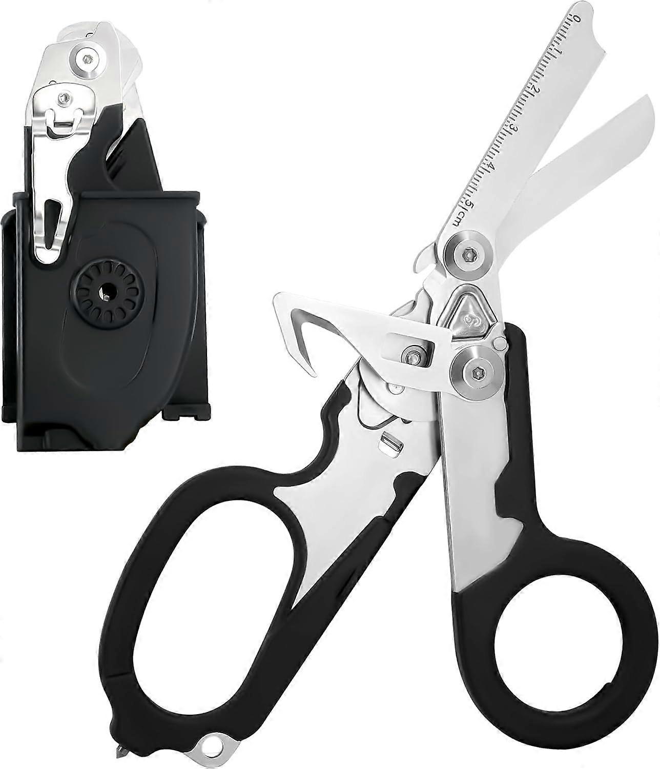 Trauma Shears with Strap Cutter and Glass Breaker, Trauma Shears with Black Holster, Stainless Steel Foldable Trauma Shears For Outdoor Rescue Use (Bl