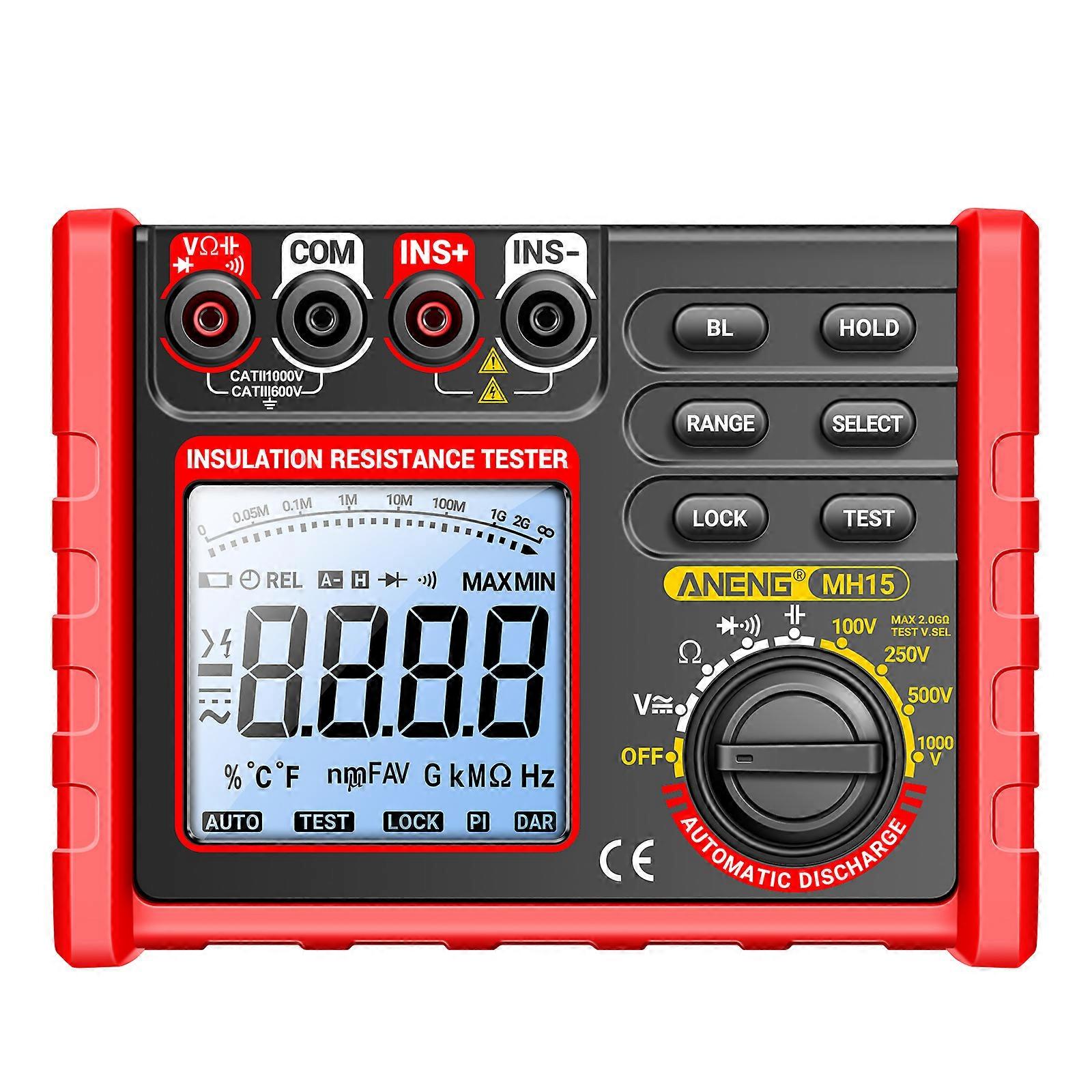 Insulation Resistance Tester 6000 Counts 0.1M Ω~2000M Ω Range DC/AC Voltage Diode Tester with LCD Display 4 Test Voltage Optional 100V 250V 500V 1000V