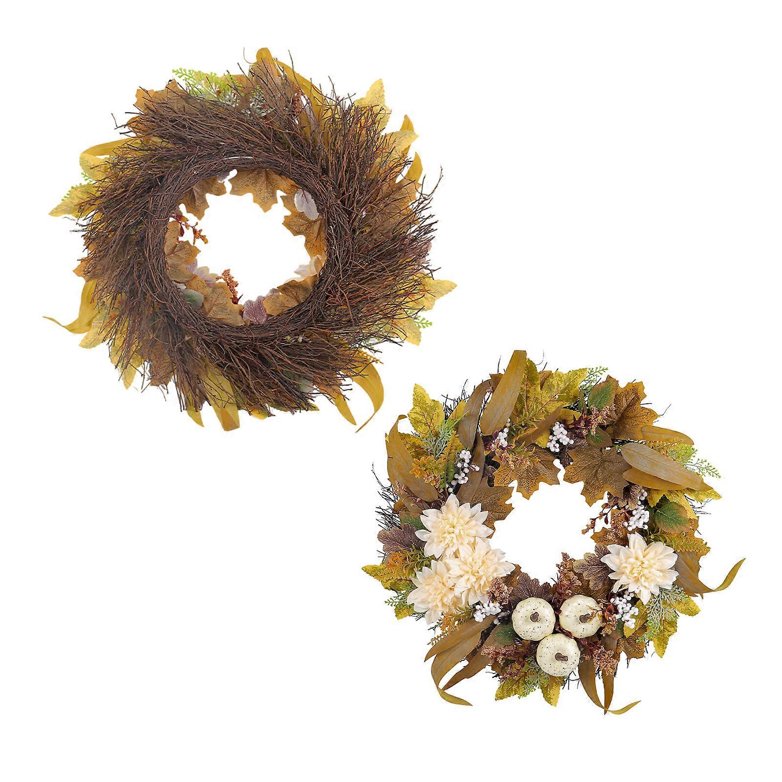 Thanksgiving Day Wreath with Pumpkins, Harvest Wreath for Inside Outside, Artificial Leaf Wreath for Inside Outside Multicolor