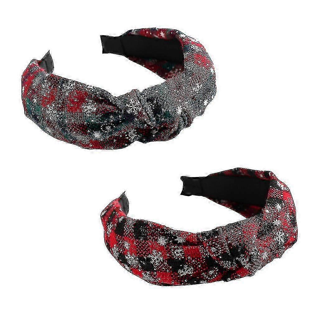 Christmas Headwear Knotted Headband with Snowflake and Plaid Hair Hoop