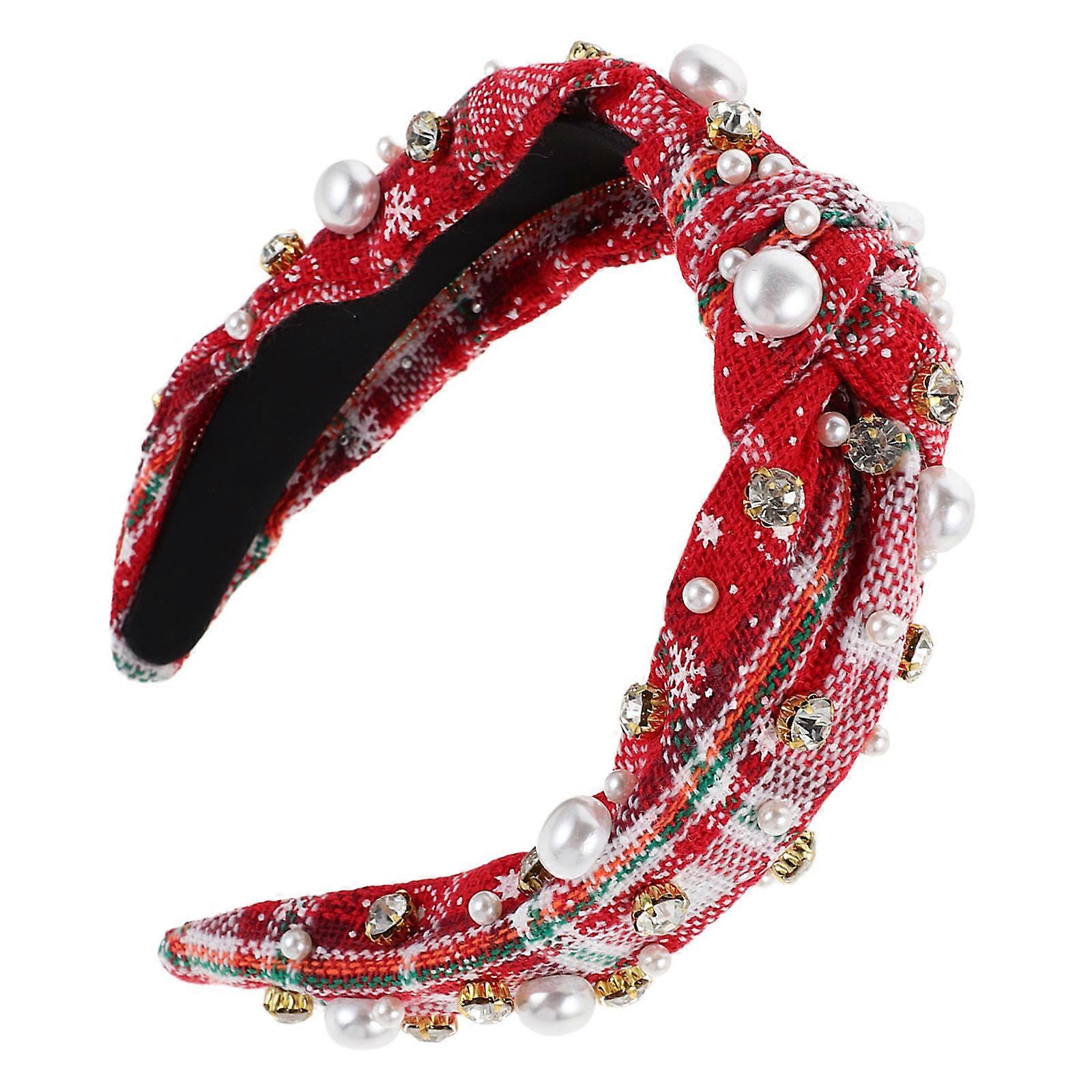 Christmas Headband Vintage Wide Knotted Hairband with Imitation Pearls
